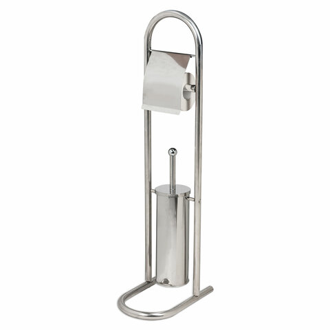 Эргономичная напольная стойка с держателем для туалетной бумаги и подставкой с ершом в комплекте.