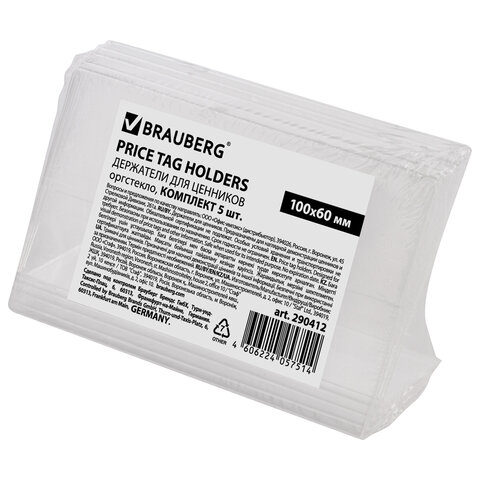 Держатели для ценников, 100х60 мм, КОМПЛЕКТ 5 шт., оргстекло, BRAUBERG, 290412