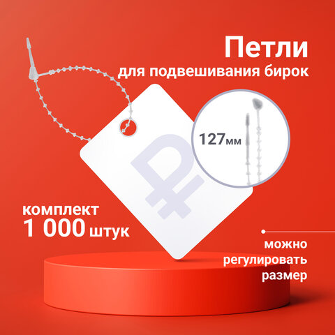 Петли для подвешивания бирок, регулируемые, 127 мм, комплект 1000 шт., BRAUBERG, 291047