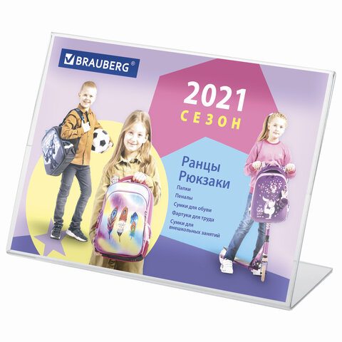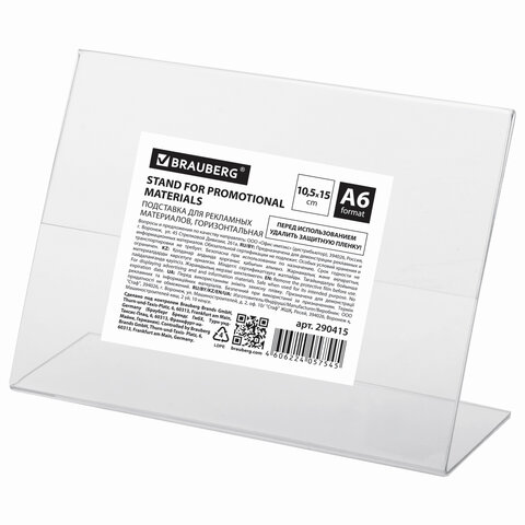 Подставка настольная для рекламных материалов ГОРИЗОНТАЛЬНАЯ (105х150 мм), А6, односторонняя, BRAUBERG, 290415
