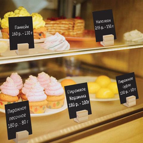 Держатели для ценников BRAUBERG предназначены для размещения меловых табличек, ценников, фото, нумерации столов и рекламной информации. Идеальны для использования в магазинах, кафе, кондитерских, барах и других заведениях.