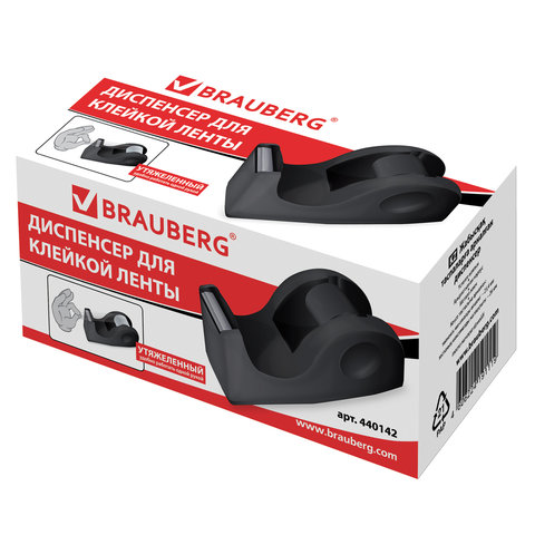 Диспенсер для клейкой ленты BRAUBERG настольный, утяжеленный, средний, черный, 11,8х5х5 см, 440142