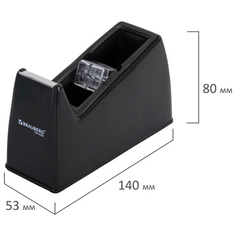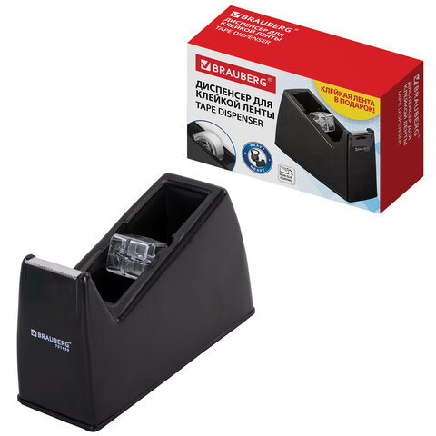 Диспенсер BRAUBERG предназначен для облегчения использования клейкой ленты, предоставляет легкий доступ к скотчу, упрощает процесс упаковки и ремонта предметов, незаменим при большом объеме работ.