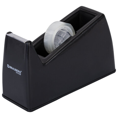 Диспенсер для клейкой ленты шириной до 26 мм, ЧЕРНЫЙ (лента в подарок!), утяжеленный большой, BRAUBERG, 701459