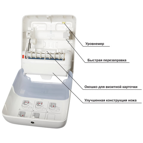 Бесконтактный диспенсер оптимально подходит для мест с высокой проходимостью, обеспечивает значительное сокращение расхода полотенец. Автоматический отрыв полотенец листами по 25 см в длину. Рычаг подачи полотенец "PUSH" виден только при заправке рулона.