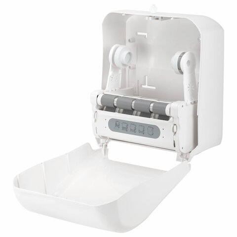 Благодаря системе бесконтактной подачи диспенсер для полотенец в рулонах LAIMA PROFESSIONAL ORIGINAL обеспечивает значительное сокращение расхода полотенец. Оптимальное решение для мест с высокой проходимостью.