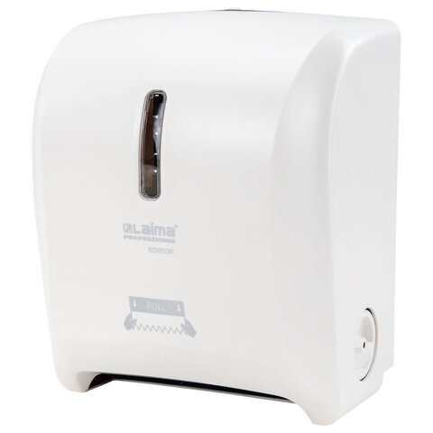 Диспенсер для полотенец в рулонах LAIMA PROFESSIONAL SUPER (H1), механический, белый, ABS-пластик, 609506