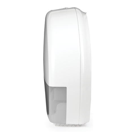 Идеальное решение для туалетных комнат с большой проходимостью людей. Оснащен устройством, предотвращающим самопроизвольное разматывание рулона и дополнительной втулкой для частично использованного рулона.
