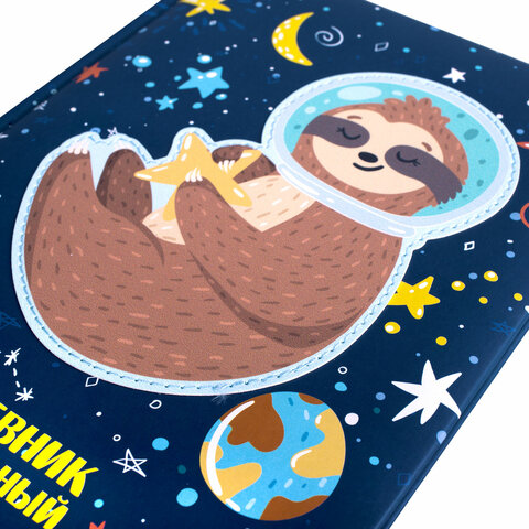 Дневник 1-4 класс 48 л., кожзам (твердая), печать, аппликация, ЮНЛАНДИЯ, "Ленивец", 106197