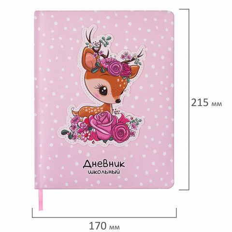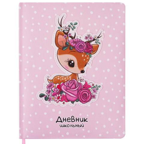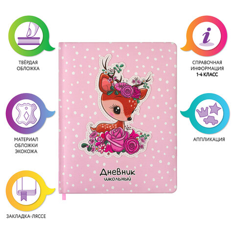 Дневник 1-4 класс 48 л., кожзам (твердая с поролоном), печать, аппликация, ЮНЛАНДИЯ, "ОЛЕНЕНОК", 105937