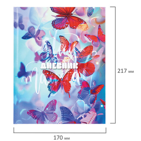 Дневник 1-4 класс 48 л., твердый, BRAUBERG, глянцевая ламинация, с подсказом, "Бабочки", 107151
