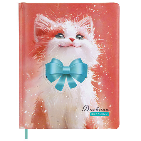 Дневник 1-4 класс 48л, кожзам (твердая с поролоном), печать, аппликация, ЮНЛАНДИЯ, Котик, 107224