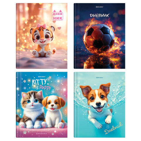 Дневник 1-4 класс 48 л., твердый, BRAUBERG, глянцевая ламинация, с подсказом, "МИКС", 107587