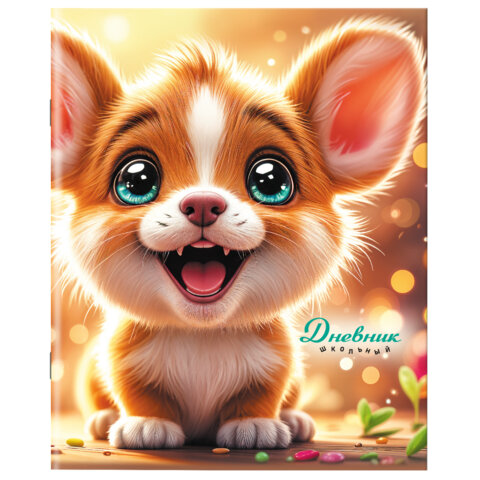 Дневник 1-11 класс 40 л., на скобе, ПИФАГОР, обложка картон, "Собачка", 107134