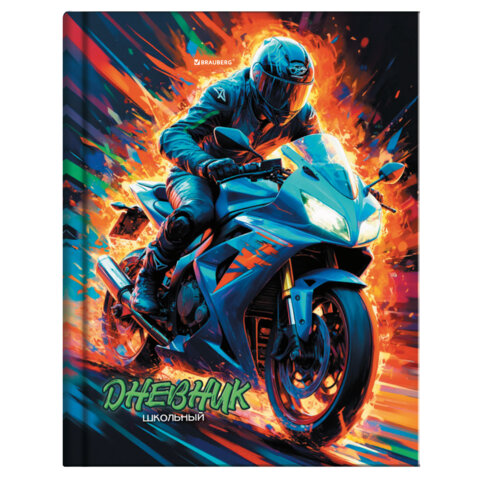 Дневник 1-11 класс 40 л., твердый, BRAUBERG, глянцевая ламинация, "Мотоцикл", 107605