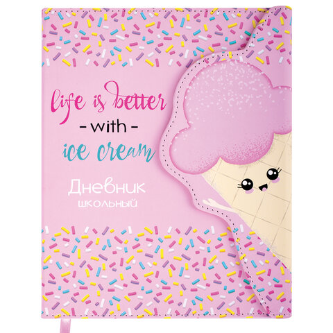 Дневник 1-11 класс 48 л., кожзам (твердая), магнитный клапан, ЮНЛАНДИЯ, "Мороженка", 106184