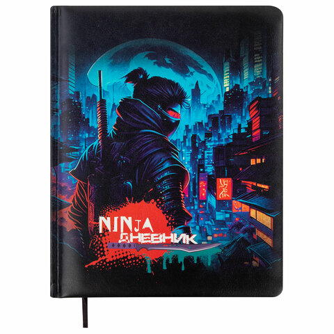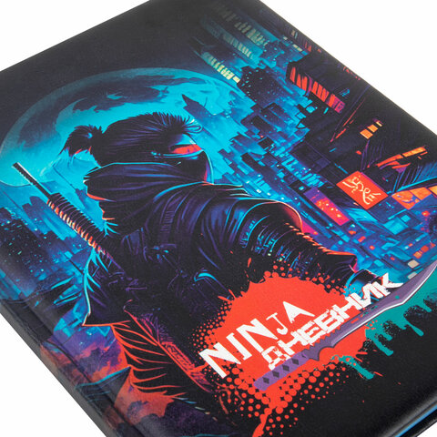 Дневник 1-11 класс 48 л., кожзам (твердая с поролоном), печать, цветной блок, BRAUBERG, "Ниндзя", 106950