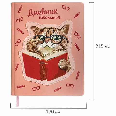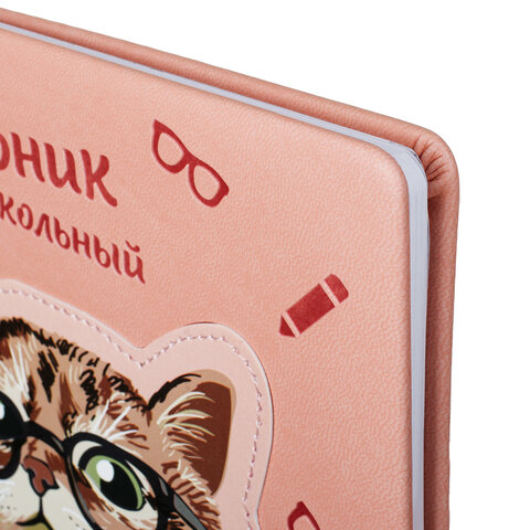 Дневник 1-11 класс 48 л., кожзам (твердая с поролоном), тиснение, аппликация, BRAUBERG, "Smart Cat", 106206