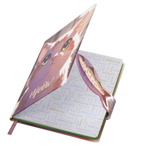Дневник 1-11 класс 48 л., кожзам (твердая), застежка, BRAUBERG, "Котик с рыбкой", 107229