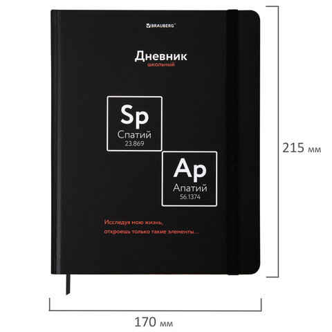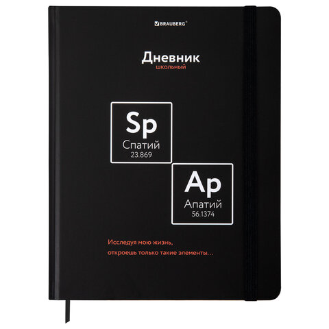Дневник 1-11 класс 48 л., твердый, BRAUBERG, матовая ламинация, резинка, закладка-ляссе, с подсказом, "Элементы", 107242