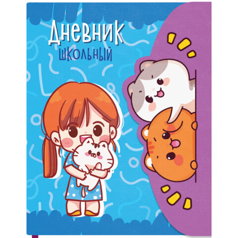 Дневник 1-11 класс 48 л., кожзам (твердая), магнитный клапан, ЮНЛАНДИЯ, "Девочка и котики", 106928