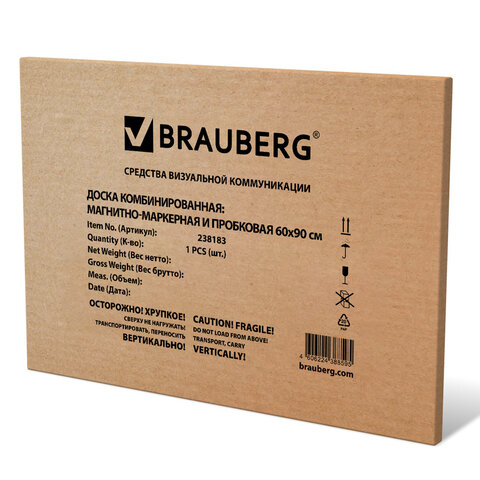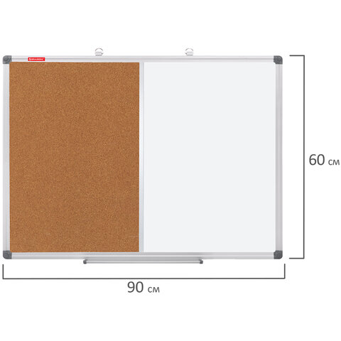Доска комбинированная: магнитно-маркерная, пробковая для объявлений 60х90 см, BRAUBERG Extra, 238183