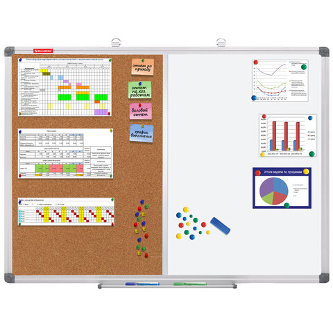 Комбинированная доска BRAUBERG Extra: магнитно-маркерная и пробковая доски в единой рамке для экономии пространства. Идеально подходит для использования в любых организациях.