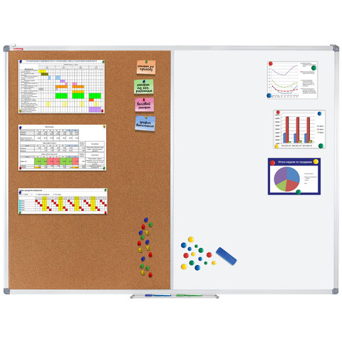 Доска комбинированная: магнитно-маркерная, пробковая для объявлений 90х120 см, BRAUBERG Extra, 238184