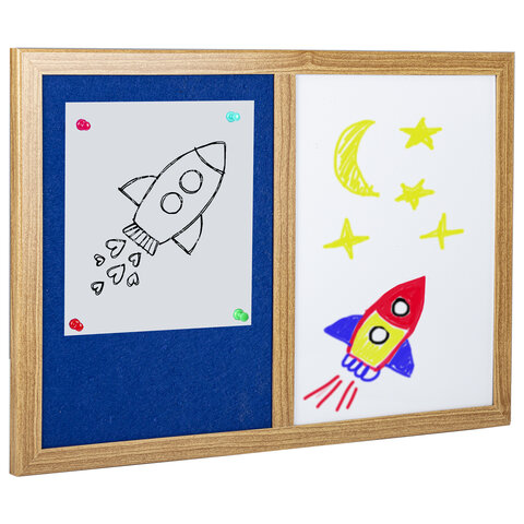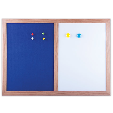 Комбинированная доска BRAUBERG - магнитно-маркерная и пробковая доски в единой рамке - позволит разместить объявления при помощи кнопок и офисных булавок. Широко используется в организациях различного рода деятельности.