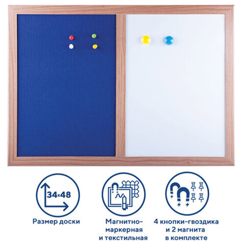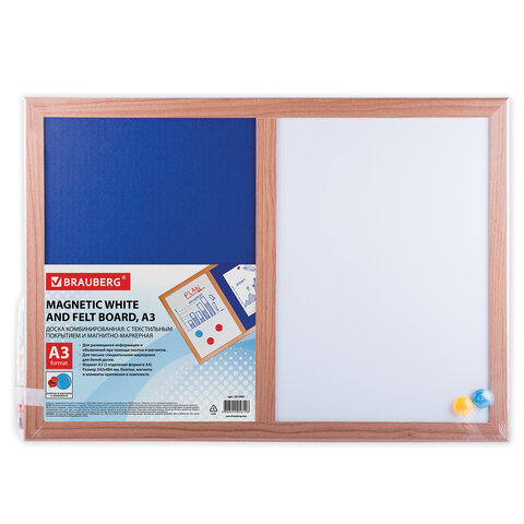 Доска комбинированная: магнитно-маркерная, текстильная для объявлений А3, 342х484 мм, BRAUBERG, 231995
