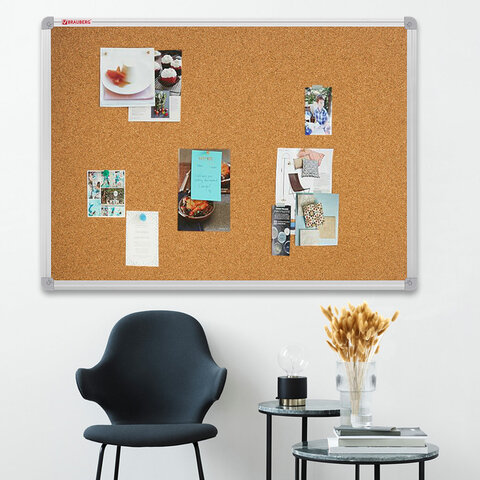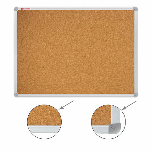 Доска пробковая для объявлений 100х150 см, алюминиевая рамка, ГАРАНТИЯ 10 ЛЕТ, РОССИЯ, BRAUBERG, 238181