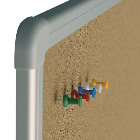 Пробковая поверхность доски позволяет легко размещать информацию и объявления с помощью кнопок, офисных булавок и т.п.