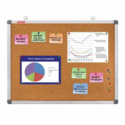 Пробковая доска BRAUBERG Extra идеально подходит для размещения объявлений при помощи кнопок и офисных булавок. Широко применяется в различных организациях.
