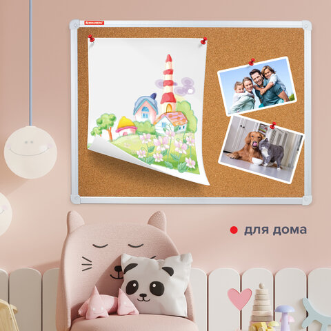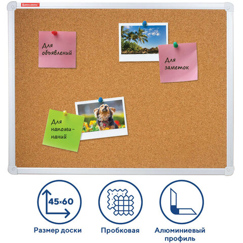 Доска пробковая для объявлений 45х60 см, алюминиевая рамка, ГАРАНТИЯ 10 ЛЕТ, РОССИЯ, BRAUBERG, 231711