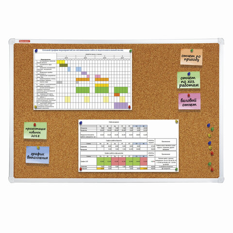 Пробковая доска BRAUBERG позволит разместить объявления при помощи кнопок и офисных булавок. Широко используется в организациях различного рода деятельности.