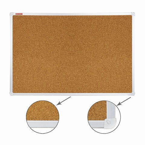 Доска пробковая для объявлений 60х90 см, алюминиевая рамка, ГАРАНТИЯ 10 ЛЕТ, РОССИЯ, BRAUBERG, 231712