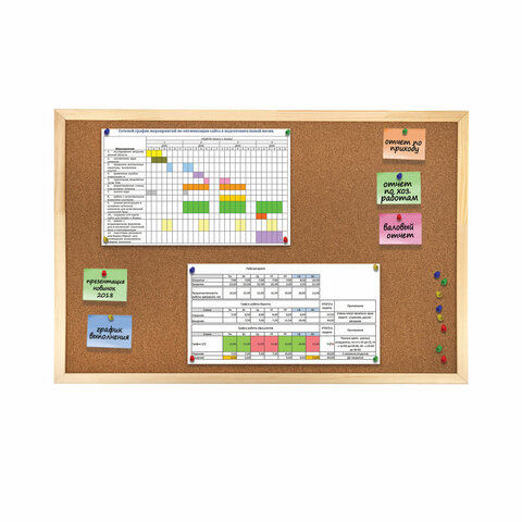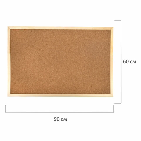 Доска пробковая для объявлений 60х90 см, деревянная рамка, ГАРАНТИЯ 10 ЛЕТ, РОССИЯ, BRAUBERG, 236860