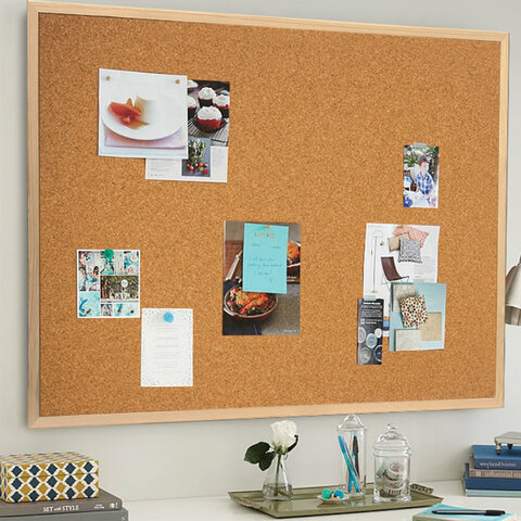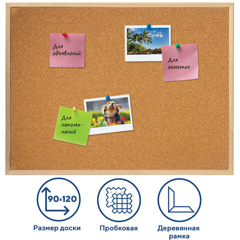 Доска пробковая для объявлений 90х120 см, деревянная рамка, ГАРАНТИЯ 10 ЛЕТ, РОССИЯ, BRAUBERG, 236861