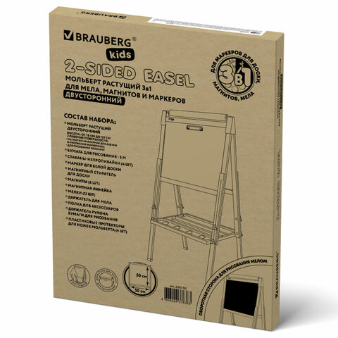 Мольберт растущий 3 в 1 для мела/магнитно-маркерный 50х50 см, бумага для рисования, BRAUBERG KIDS, 238150