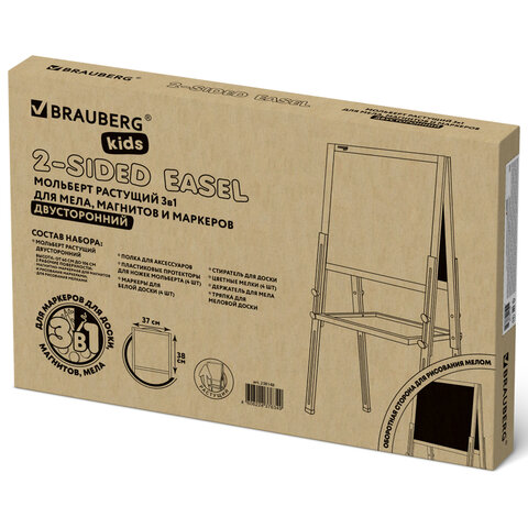 Мольберт растущий двусторонний BRAUBERG KIDS предназначен для развития творческих способностей ребенка и обустройства игрового пространства в детских учреждениях и дома.