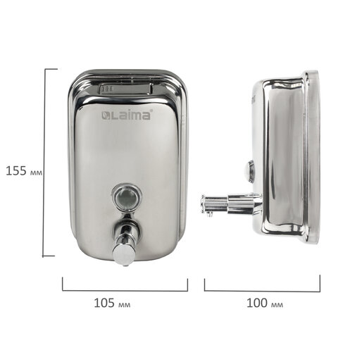 Дозатор для жидкого мыла LAIMA BASIC, 0,5 л., нержавеющая сталь, зеркальный, 601795