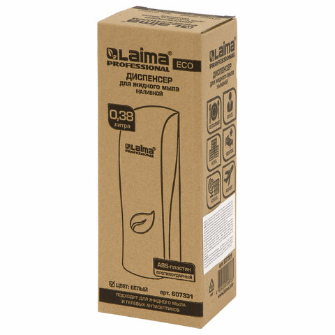 Дозатор для жидкого мыла LAIMA PROFESSIONAL ECO, НАЛИВНОЙ, 0,38 л, белый, ABS-пластик, 607331