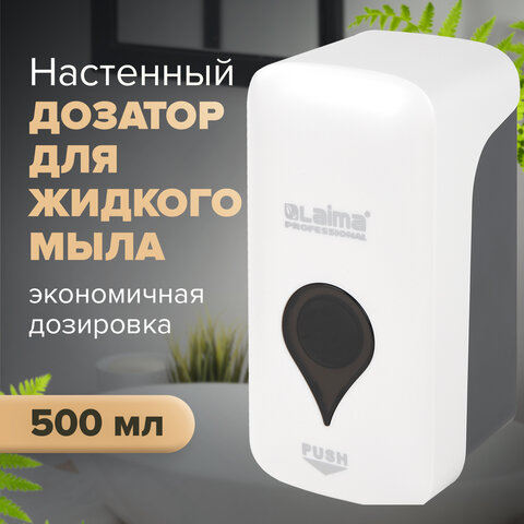 Дозатор для жидкого мыла ULTRA LAIMA PROFESSIONAL, НАЛИВНОЙ, 0,5 л, белый, ABS-пластик, 606829