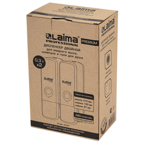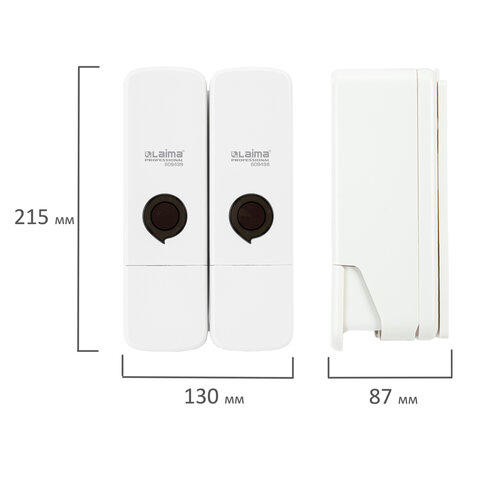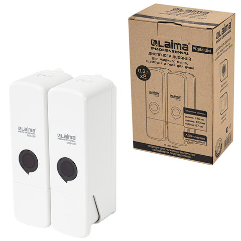 Дозатор двойной 2 х 0,3 л для жидкого мыла/шампуня/геля LAIMA PREMIUM, НАЛИВНОЙ, белый, ABS-пластик, 609499