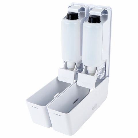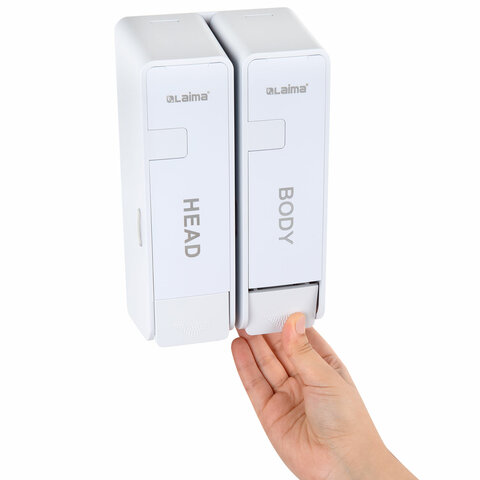 Дозатор двойной 2х0,38 л для жидкого мыла/шампуня/геля LAIMA ULTRA, НАЛИВНОЙ, белый, 609107, MD-9029W-2