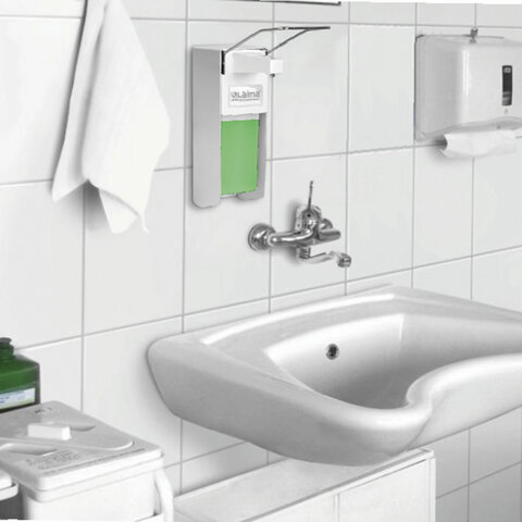 Дозатор локтевой для жидкого мыла и геля-антисептика, с еврофлаконом 1 л, LAIMA, металлический, 605706