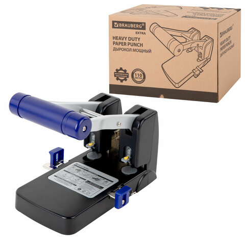 Дырокол металлический МОЩНЫЙ BRAUBERG "EXTRA Heavy duty", до 110 листов, черно-синий, 272721