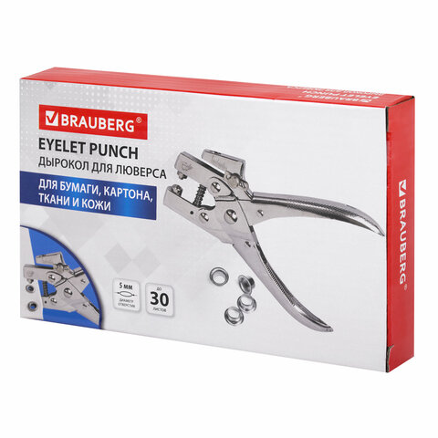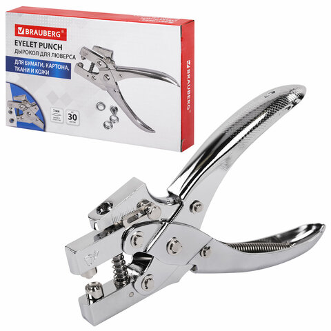 Металлический дырокол BRAUBERG предназначен для пробивания одного отверстия и установки люверса.