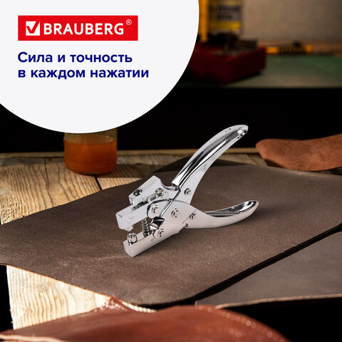 Дырокол металлический на 1 отверстие для люверса до 30 л., диаметр отверстия 5 мм, BRAUBERG, 272763