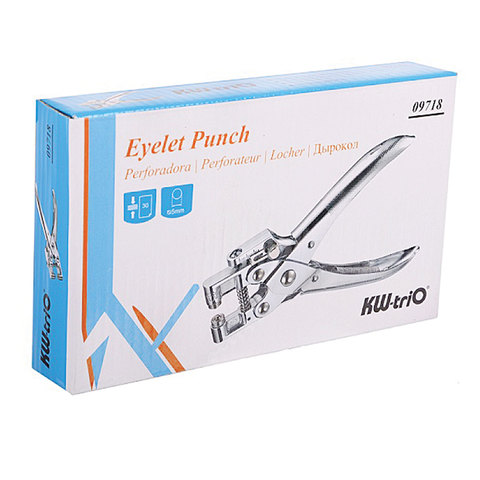 Дырокол на 1 отверстие для установки люверса (225143), диаметр отверстия 5 мм, до 30 листов, хром, KW-trio, 9718, -9718